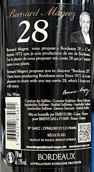 Hur är Bernard Magrez 28 Bordeaux 2021 framställt?