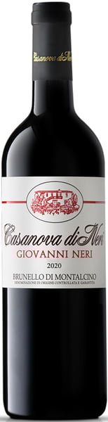 Giovanni Neri 2020 är gjord av 100% Sangiovese som Casanova di Neri handplockar från 50-åriga vinstockar på en 7 hektar stor enskild vingård i Sesta, belägen i den sydöstra delen av Montalcino-området. Druvorna dubbelsorteras före och efter avskalning innan vinet spontanjäses med 20% inblandning av stjälkar (hela klasar). Jäsningen sker i konformade och temperaturkontrollerade tankar med 29 dagars maceration, där ett speciellt fällningssystem hjälper till att extrahera extra juice, kraft och tannin från druvskalen. Vinet lagras sedan i 30 månader på fat och 22 månader på flaska innan det släpps.