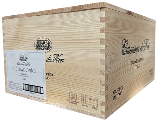 Pietradonice är tillverkat av 100% Cabernet Sauvignon, handplockat av Casanova di Neri från en stenig terroir med galestro-mergel i sydöstra Montalcino. (Den unika geologiska platsen var ursprungligen ett onyxbrott!) I vingården sker en strikt kvalitetssortering med optisk teknik innan vinet spontanjäses med terroirens egen jäst. 18 dagars maceration med täta nedstötningar drar ut färg, smak och tanniner från druvans skal. Efter jäsningen tappas vinet upp och lagras i 18 månader på 225 liters franska barriquer.