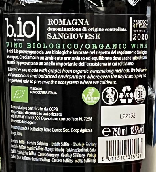 Det ekologiskt certifierade rött vinet är tillverkat av 100% Sangiovese från Emilia-Romagna. Musten jäser relativt svalt vid 24°C på rostfritt stål, vilket framhäver frukt och aromatisk finess. Lagrad 6-8 månader i ståltankar.