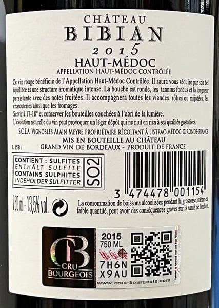Château Bibian Haut-Médoc Cru Bourgeois 2015