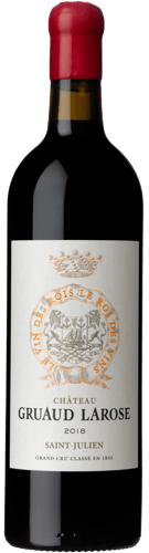 Grand Vin: Chateau Gruaud Larose, 1855 2. Grand Cru Klassé 2. Vin: Sarget de Gruaud Larose Plats: Saint-Julien Planterat område: 82 ha Planterade druvsorter: 61% Cabernet Sauvignon, 29% Merlot, 7% Cabernet Franc, 3% Petit Verdot Lagring på fat: 18 månader 85% ny pipa