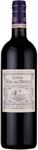 Grand Vin: Château Tour des Termes, Cru Bourgeois 2. Vine: Förord de Tour des Termes Plats: Saint-Estèphe Planterat område: 15 hektar Planterade druvsorter: 60% Merlot, 30% Cabernet Sauvignon, 5% Cabernet Franc, 5% Petit Verdot Lagring på fat: 15 månader 50% ny pipa