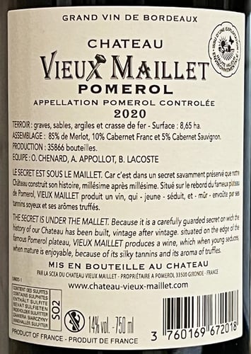 Chateau Vieux Maillet Pomerol 2020 i 12 stk trækasse
