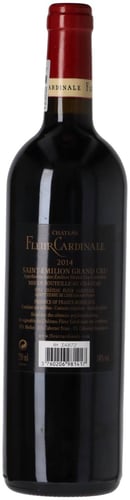 2014 Chateau Fleur Cardinale är en blandning av 70% Merlot, 25% Cabernet Franc och 5% Cabernet Sauvignon, handskördade från 35-åriga vinstockar mellan den 9 och 25 oktober 2014. Vinifieringen sker i samarbete med den legendariske Jean-Luc Thunevin från grannhuset Château Valandraud. Efter 5-6 dagars kall maceration vid 5°C följer jäsningen, följt av ytterligare 2-3 veckors macerationstid. All överpumpning av musten sker enbart med hjälp av gravitation, vilket ger en mer skonsam extraktion av färg, smak och tanniner från druvskalen än om man använder pumpar. Den ekologiskt producerade jäsningshallen är utrustad med hela 22 små, temperaturkontrollerade ståltankar så att vinifieringen kan ske parcellvis med druvor som skördas vid optimal mognad. Slutligen mognar Le Grand Vin i 12-16 månader på helt nya franska barriques (med ek från Tronçai, Bertranges, Jupille och Limousin).