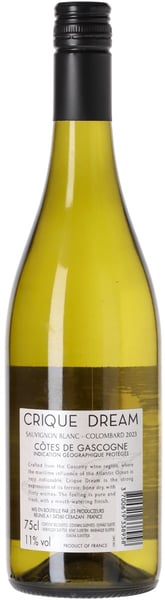 Crique Dream 2023 är tillverkat av 50% Sauvignon Blanc, som kompletteras med samma mängd Colombard. Druvorna väljs från kalkhaltiga jordar nära Atlanten, där ett svalt maritimt inflytande ger druvor och vin som är fyllda med smakrik mineralitet och skarp aromatisk rikedom.