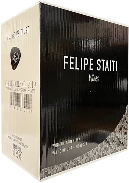 Felipe Staiti Vertigo 2019 är tillverkat av 70% Malbec, 20% Syrah och 10% Cabernet Franc. Druvor med extra hög smakintensitet skördas 1050 meter över havet från upp till 110 år gamla vinstockar i Valle de Ucos berömda Vista Flores-zon. Marcelo Pelleriti fatjäsar de tre druvsorterna tillsammans (samjäsning) för att ge vinet ett mer unikt, komplext och intressant uttryck. Vinet lagras sedan i 18 månader på franska barriquer, varav 30% är nya.