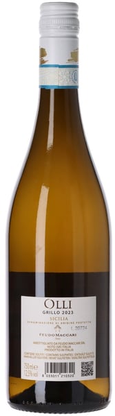 Feudo Maccari Olli är tillverkat av 100% Grillo, en av Siciliens karakteristiska vita druvor. Druvorna skördas för hand från 20-åriga "bush"-vinstockar som växer på sydvända sicilianska vingårdar. Majoriteten av druvorna kommer från den enda vingården Olli, som ligger nära Noto i sydöstra Sicilien. Namnet på fältet är en hyllning till en gammal vinmakare från regionen. Fermenterad och lagrad i ståltankar - för en fruktig och autentisk representation av Grillo-druvans charmiga egenskaper.