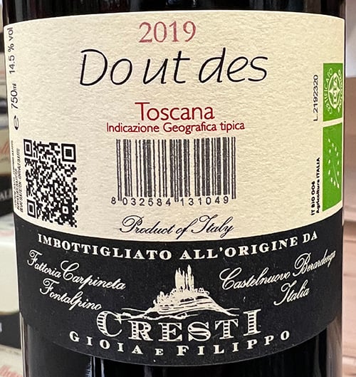 Vinmakarna var sedan länge överens om att detta skulle bli en milstolpe för Do Ut Des, en fransk Bordeaux-blandning bestående av 33% Cabernet Sauvignon, 33% Merlot och 34% Petit Verdot. Vinet är bortskämd i källaren som en Bordeaux 1. Cru Classé med 18 månader på franska 225-liters barriques från Allier och Trochet. Vad sägs om det?