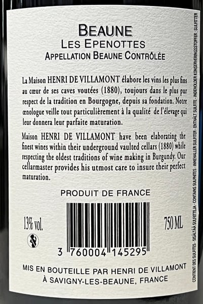 Hur smakar Henri de Villamont Beaune Les Epenottes 2017?