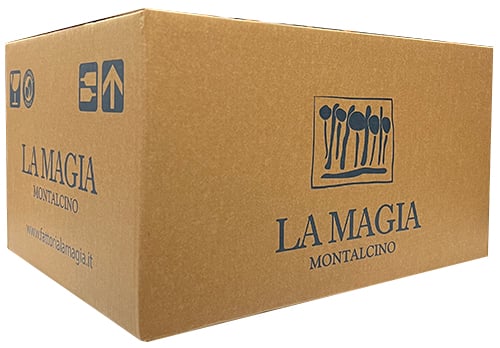 La Magia Brunello di Montalcino är gjord av 100% Sangiovese från 44-åriga vinstockar i sydöstra Montalcino. De ekologiskt odlade druvorna samlas in under flera skördar, så att endast perfekt mognad frukt hittar vägen till det färdiga toppvinet.