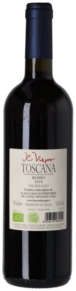 Il Vispo 2024 är gjort på 100% Sangiovese, där La Magià väljer ut druvor från ekologiskt certifierade marker längs floden Orcia, strax öster om Montalcinos berömda Brunello-centrum. Vinet är framställt i en ung och fruktig stil med kall jäsning av hela druvklasar i ståltank. Inspirerat av metoden ”semi carbonic maceration”, som bland annat är känd från rödviner av den mest trendiga typen i Bourgogne.