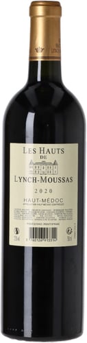 årgång 2020 av "Les Hauts de Lynch-Moussas" presenterar sig med en klassisk djup plommonröd färg som nästan är svart i mitten ... Näsan avslöjar omedelbart DNA från Pauillac-slottet med en ädel och parfymerad lyxig doft av färska violer, körsbärslikör, mörka plommon, hallon och svarta vinbär, lyfts ytterligare av cigarrlåda, kaffebönor, mynta och grafit. Vinet landar silkeslent i gommen, där man tydligt kan känna den enastående saftigheten från toppårgången och välbalanserade tanniner som nästan löses upp när de möter gommen. Vinet avslutas i Grand Cru Classé-stil med en parad av komplexa smaker av tjära, apelsinskal och choklad. Ett fantastiskt andra vin från Lynch-Moussas Grand Cru Classé, nu tillgängligt till ett förvånansvärt lågt pris. Drick nu eller spara 10-15