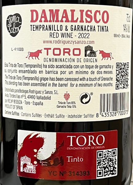 Hur smakar Rodriguez Sanzo Damalisco Roble Toro 2022?