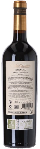 Esencia 2012 är gjord av 100% Tempranillo, plockad från 4 av de finaste och högsta tomterna i staden Labastida (La Cabaña (1964), El Bosque (1975), Espribel och Marrate (1997), som ligger mellan floden Ebro och bergskedjan Sierra de Toloño i Rioja Alavesa. Alla fyra tomterna är norrvända, vilket ger en sval elegans i en annars mycket varm region. I genomsnitt är Tempranillo-vinstockarna 60 år gamla och alla tomter skördas individuellt beroende på när druvorna är perfekt mogna. När druvorna anländer till vingården krossas de försiktigt och macerationen/blötläggningen av druvskalen i musten pågår i fyra dagar för maximal extraktion av färg och smak. Detta följs av en noggrant kontrollerad jäsning vid 28°C. Vinet mognar i bästa Rioja-stil i 18 månader på 100% nya amerikanska ekfat, vilket ger massor av kryddor och komplexitet till det slutliga vinet. Efter fatlagringen tappas vinet på flaska och lagras i minst 12-14 månader på flaska. Denna batch kommer direkt från Rolland & Galarretas egna källare, där toppvinet har mognat till perfektion i nästan 13 år.