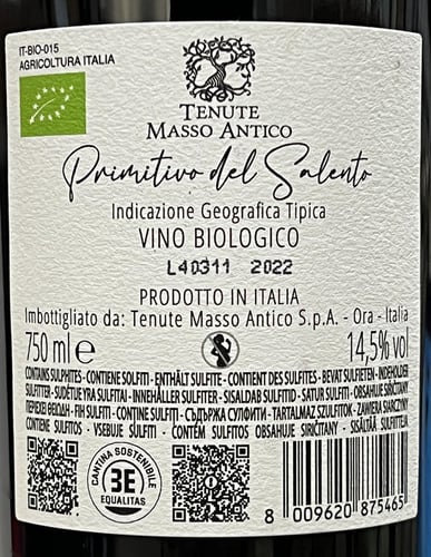 Masso Antico Primitivo Single Vineyard 2022 ØKO