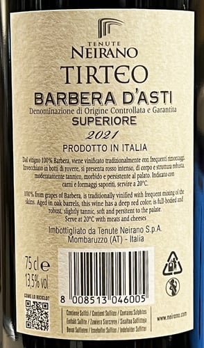 Hur smakar Tenute Neirano Barbera d'Asti Superiore DOCG Tirteo 2021?