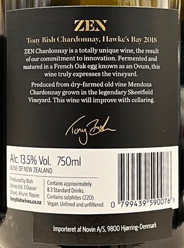Hur är Tony Bish Zen Chardonnay Hawke's Bay 2018 - GIFT BOX framställt?