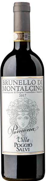 Flaggskeppet Brunello di Montalcino Pomona 2017 med en enda vingård är gjord av 100% Sangiovese. Druvorna kommer från 20 år gamla vinstockar som växer på en unik upphöjd parcell med Galestro-mergeljord. Vingården har fått sitt namn efter den italienska gudinnan för fruktodling, som pryder Villa Poggio Salvis vinetiketter.