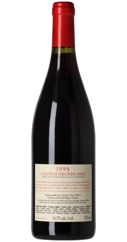 I glaset glittrar Xavier Châteauneuf-du-Pape 1998 mörkt körsbärsrött med en mogen antydan till tegelsten... Nosen utstrålar klass och koncentration med hinkvis av välbevarad röd, svart och torkad bärfrukt i doften som tar dig med storm med kryddig svartpeppar, blommiga rosor, lavendel och viol, provensalska garriqueörter, choklad, läder, torkat kött, lakrits, mineraltryffel och regnig skogsmark... Vinet smälter silkeslent på tungan, med toppfrukten som på ett unikt sätt förkroppsligar både friska och ädelt mogna smaker av det mest utsökta slaget! Otaliga fina intryck bygger harmoniskt och överväldigar sinnena i den spännande långa, fruktiga finishen som bleknar med lakritsdjup, hemsökande mineralitet och örtig elegans. Vinet släpps drickfärdigt, men det kan med fördel lagras i +30 år från skördeåret.
