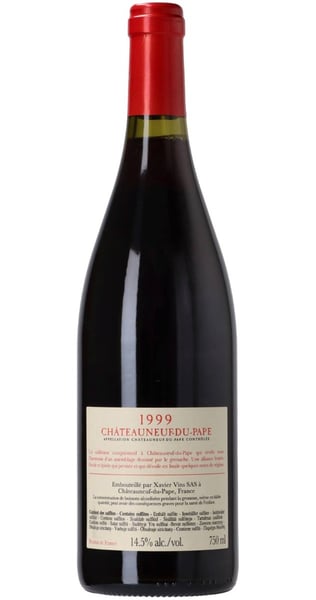 Xavier Châteauneuf-du-Pape 1999 är gjord av 100% Grenache från en terroir med de berömda galets roulés över underliggande lera, sand och kalksten. I vingården är druvorna 100% avskalade med partiell krossning. Jäsningen sker i en blandning av träfat och betongtankar tills vinet mognar fruktbevarande i betongtankar under en lång tid fram till buteljeringen 2023.
