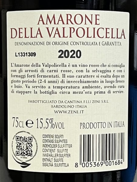 Hur smakar Zeni Amarone della Valpolicella 2020?